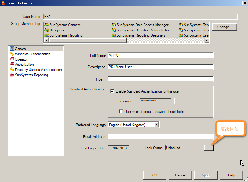 无法登录SunSystems,即使输入了正确的密码
