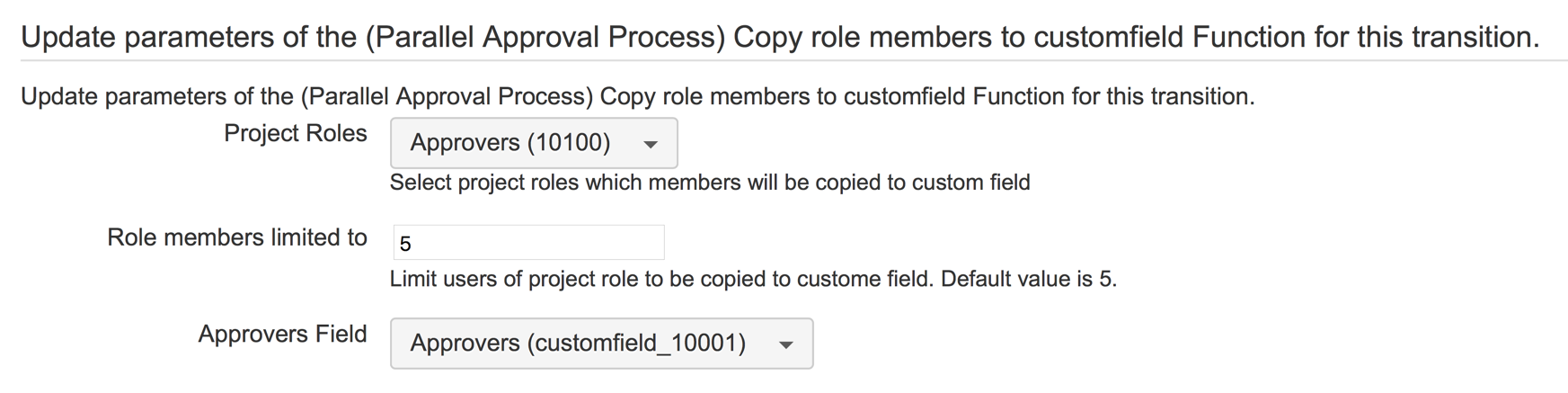 With this option, user can manage approvers by using project roles and PAP add-on will copy selected project role members to the 'Approver' custom field.