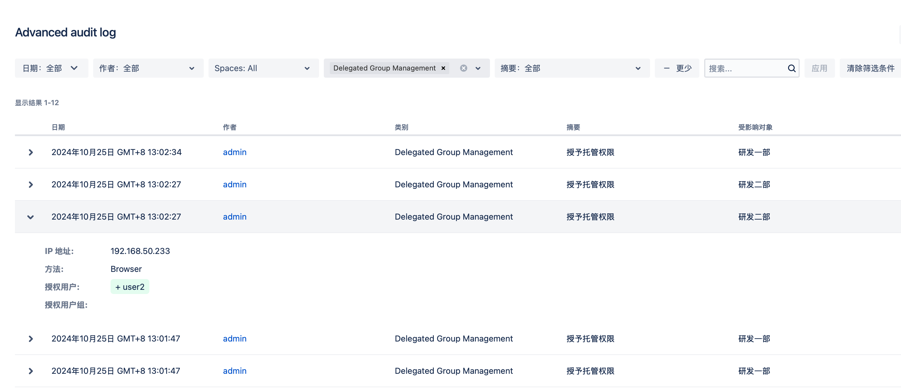 所有托管用户组的设置都会被记录到审计日志中