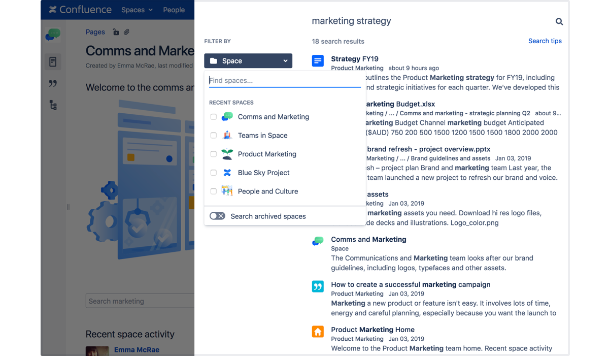 我们知道在Confluence中快速找到合适的内容以完成工作是多么重要。 在此版本中,我们引入了新的搜索体验,使您可以更轻松地搜索,过滤和查找所需的信息。