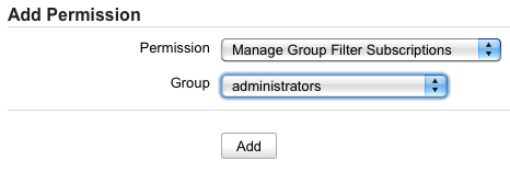 全局权限作为一个整体应用于JIRA:例如谁可以登入、创建共享的过滤器/ 面板、以及执行批量修改。然后为 'Manage Group Filter Subscriptions'(管理组过滤器订阅)添加“管理员”到全局权限中。
